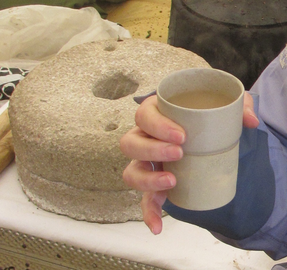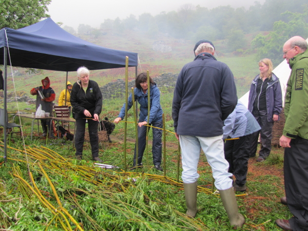 The ‘Clanscape’ group from the Loch Lomond and The Trossachs National Park ran a 1-day workshop on traditional rural skills. The group were able to grind grain using a traditional quern stone and make it into oatcakes for lunch, spin wool with drop spindles, make willow hurdles, and weave willow platters. Venison stew was cooked over an open fire, and traditional music provided by local musicians made a perfect day. Maybe the only downside was that the food and the music were too good, and not so much digging got done!